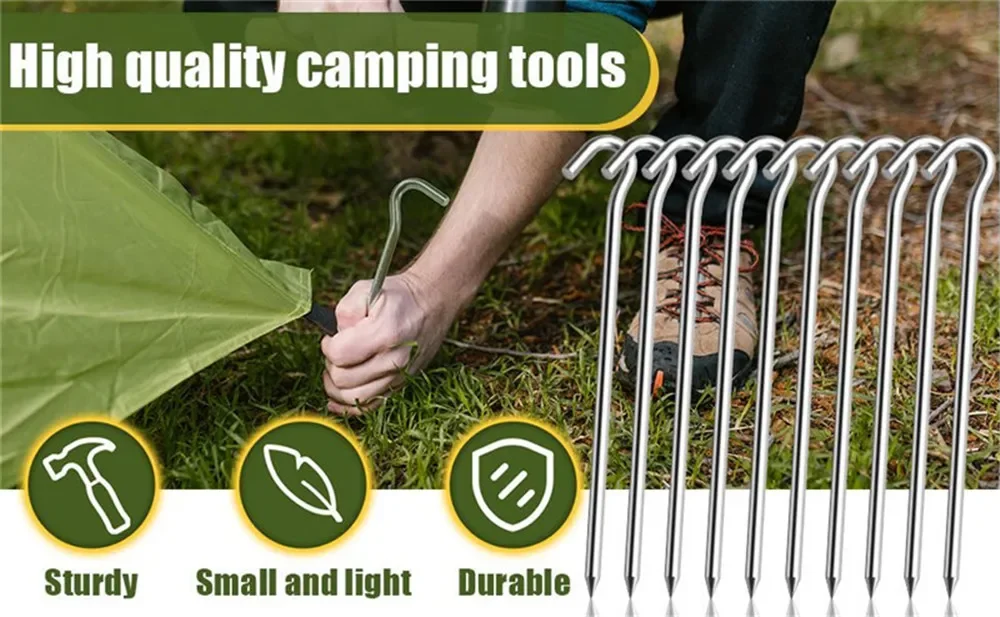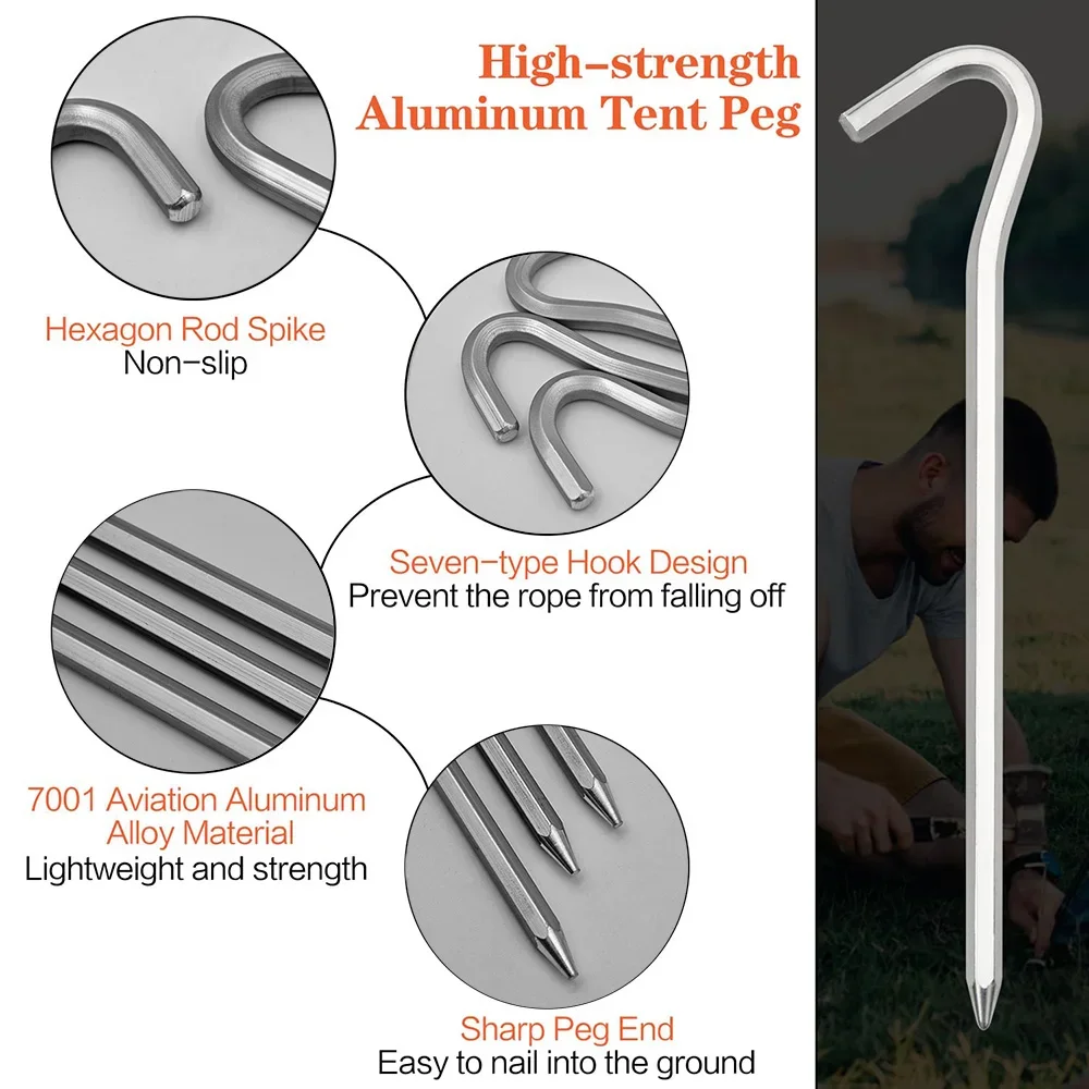 10pcs Aluminum Tent Stakes Pegs with Hooks,Outdoor Travel Camping Tarp Stakes Ground Stakes Hard and Light Tent Peg Awning